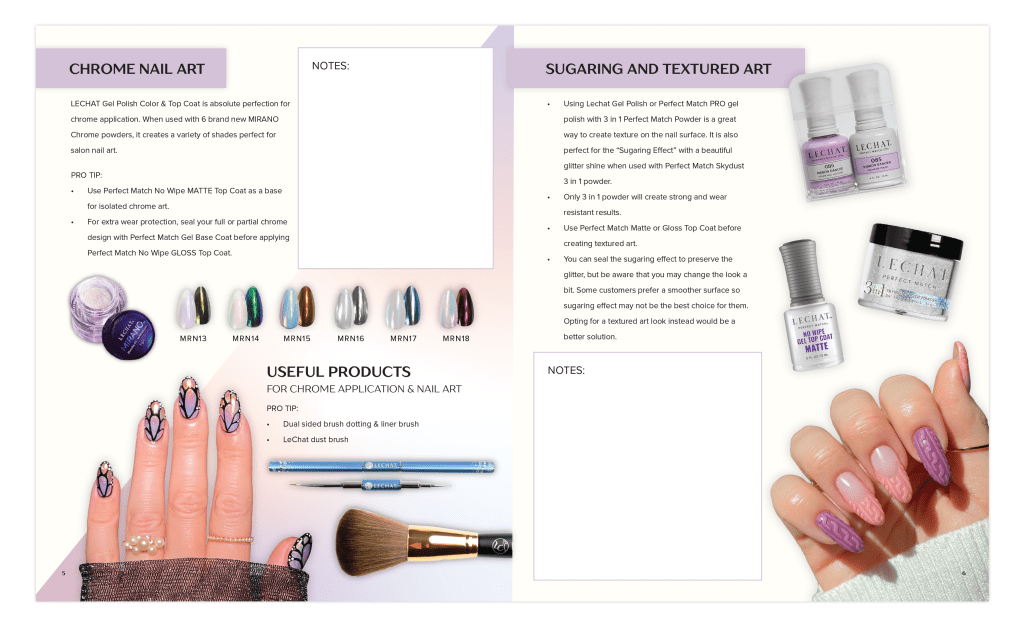I created a workbook for our Advanced Nail Art Class participants to provide visual guidance, highlighting the essential products and offering nail art examples for inspiration.